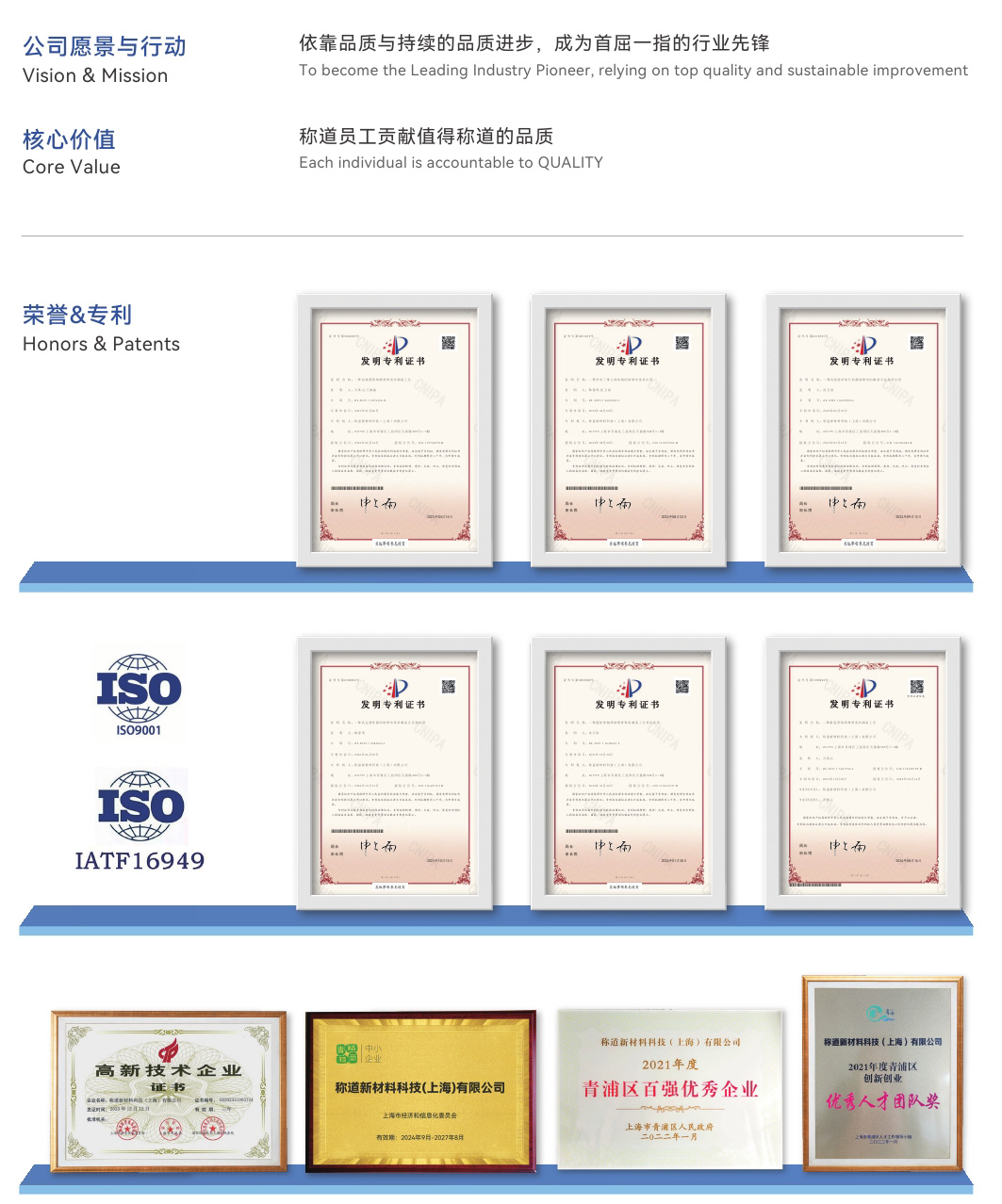稱道新材料科技(上海)有限公司,2012年成立于上海,注冊資本1000萬元。借助于管理層資深的國際專業(yè)背景和豐富的行業(yè)經(jīng)驗,整合其海內(nèi)外的技術與市場資源,經(jīng)歷數(shù)年兢兢業(yè)業(yè)的耕耘,目前發(fā)展為一家注重創(chuàng)新、倡導合作的科技型公司。在以熔噴、氣流梳理、紡粘等非織造工藝的基礎之上,其團隊進行了技術的整合與工藝的延伸,開發(fā)生產(chǎn)多用途的新型非織造材料。產(chǎn)品廣泛應用于空氣凈化、勞動防護、新風過濾與液體過濾、汽車及其他工程機械燃油過濾、工業(yè)隔熱保溫等。因性能優(yōu)異,品質穩(wěn)定,在各個應用領域均得到國內(nèi)外客戶廣泛的肯定和好評。公司已申請約30項技術專利。公司實驗室裝備了國際先進的測試設備和儀器。