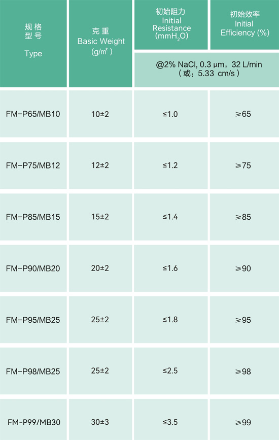 | 新風(fēng)過(guò)濾材料技術(shù)參數(shù)表 | |
